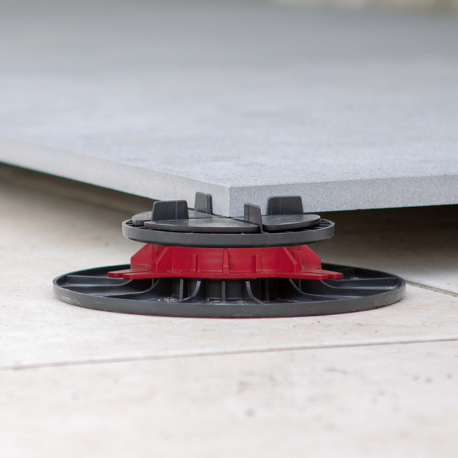 The YEED® adjustable slab pedestal or support adjusts from 2.36" to 3.54" (60-90mm) in height.